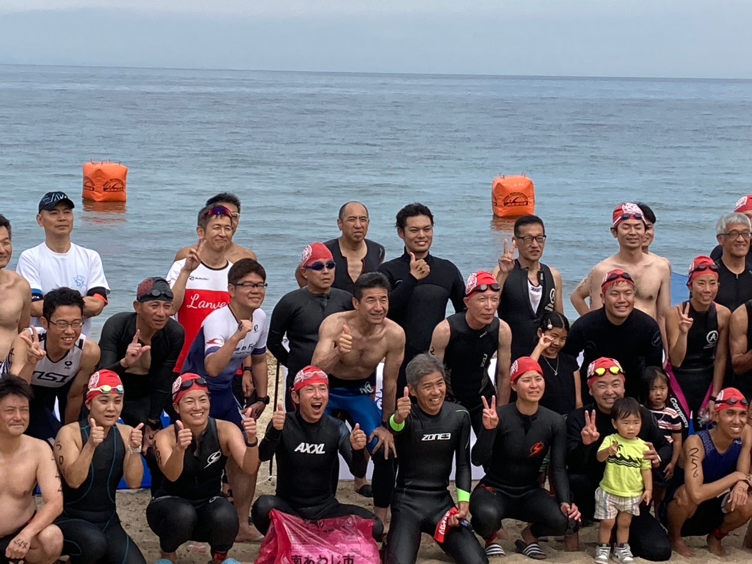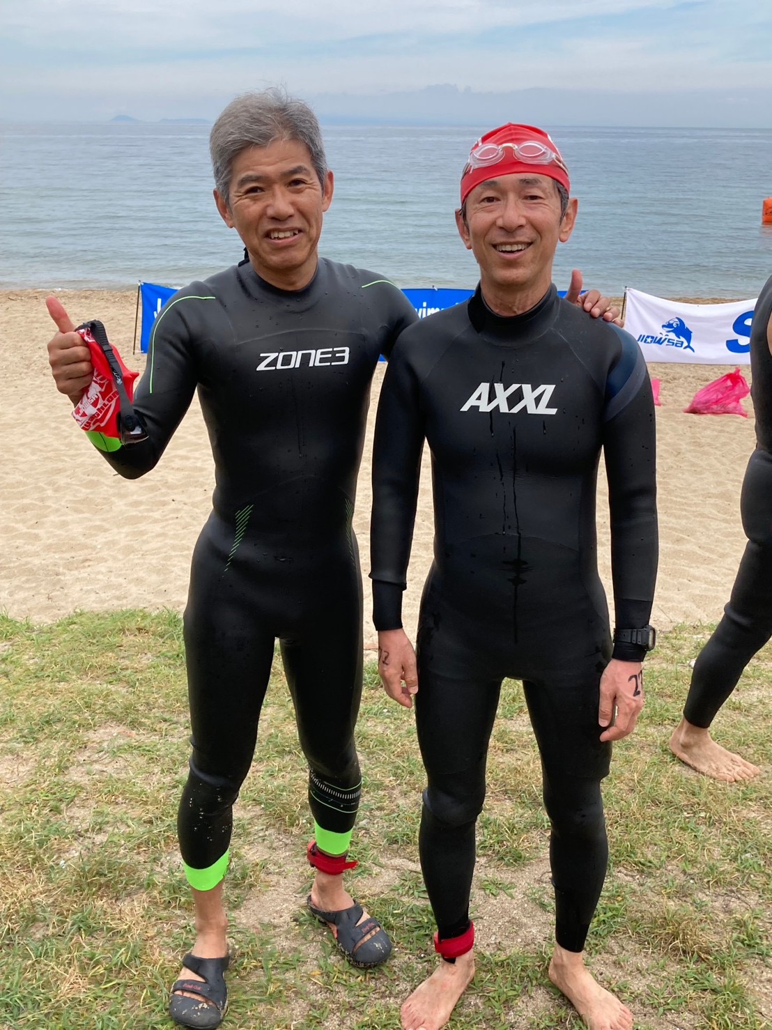 曇り、気温24度、水温23度といい感じのコンディションの中、楽しむつもりで挑みました。 スイムで4秒、ランで4分弱、総合で過去最高記録から7分54秒の更新。 記念すべき第1回大会でいい記録が出て嬉しいです。 せんなんの大会でお会いしたTetsujinさんに再会。 60歳代で3位と素晴らしい成績を出されました。