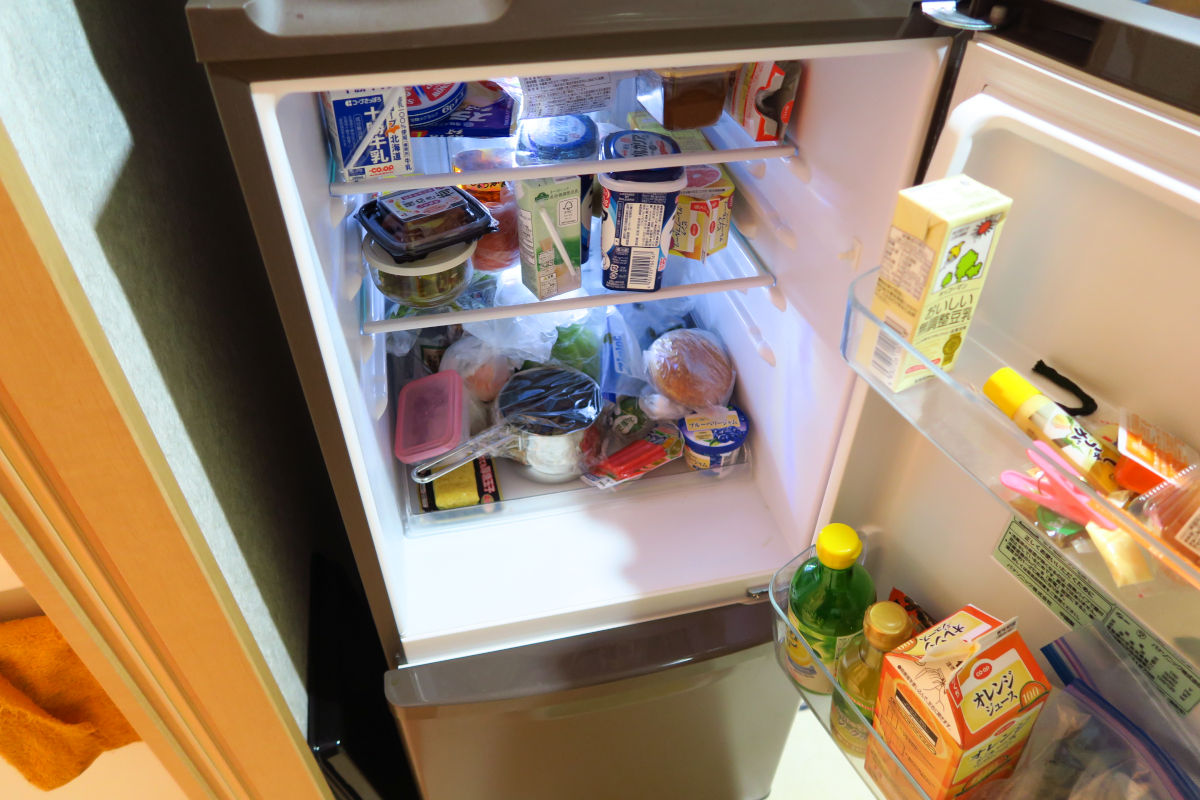 冷蔵庫の中。ちょっと乱雑だが、必要十分な量。