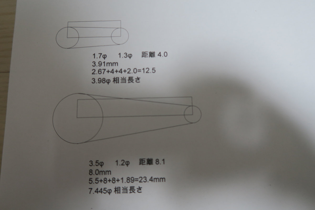 直径は適当な図を書いて見当をつけていました。だいたいφ75mmとφ40mmだったので適当なものがあると勝手に予想していました。見事ぴったり該当するものがありベルトを交換して修理完了。