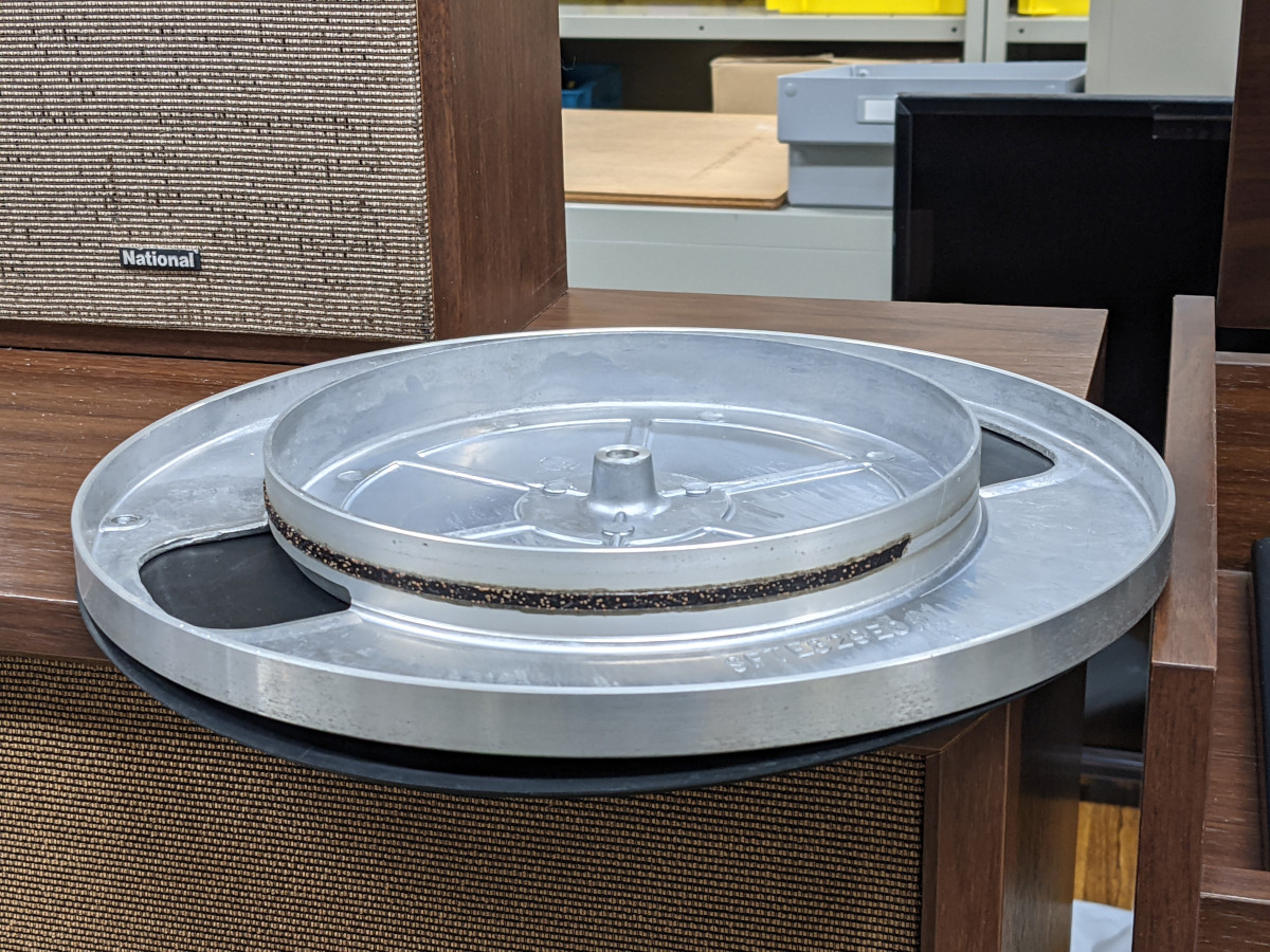 直径198mmなので 外周はΠ x 直径 = 631mm モーターキャプスタンまで10mm位離れているので、理論値的には635mmくらいか。