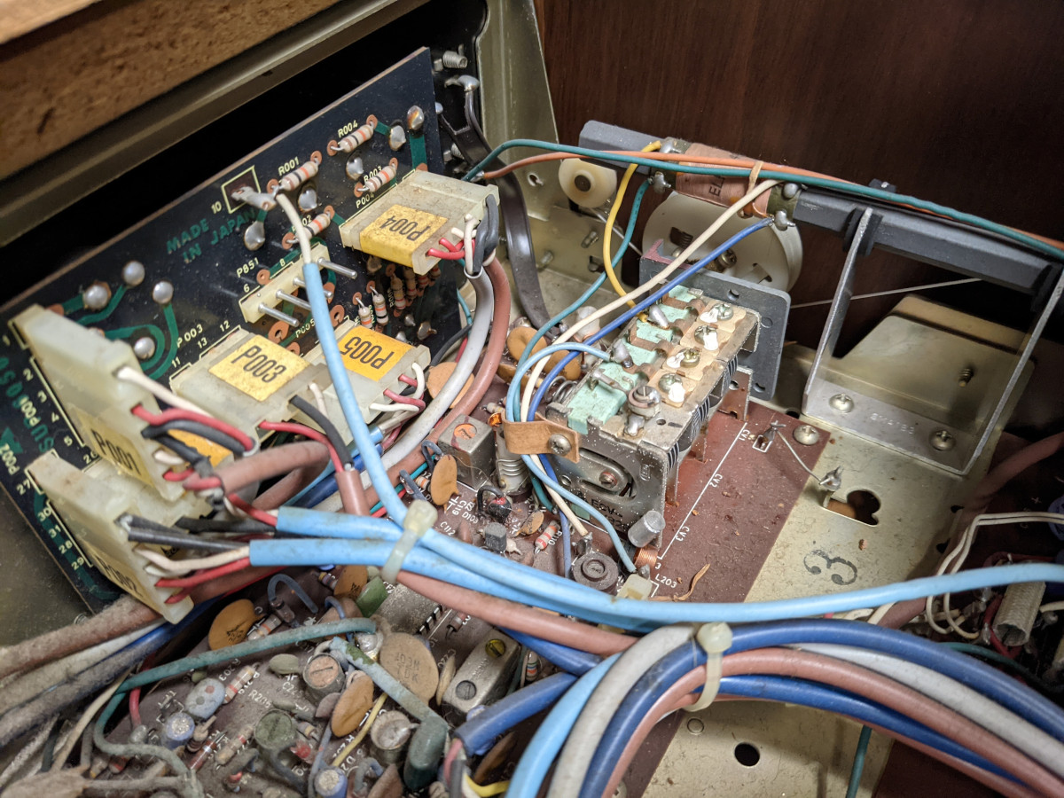 とりあえず、致命的だった電源兼スピーカー切り替えスイッチ(一番左)の不具合は解消し、ボリュームのボツ音等も改善しました。