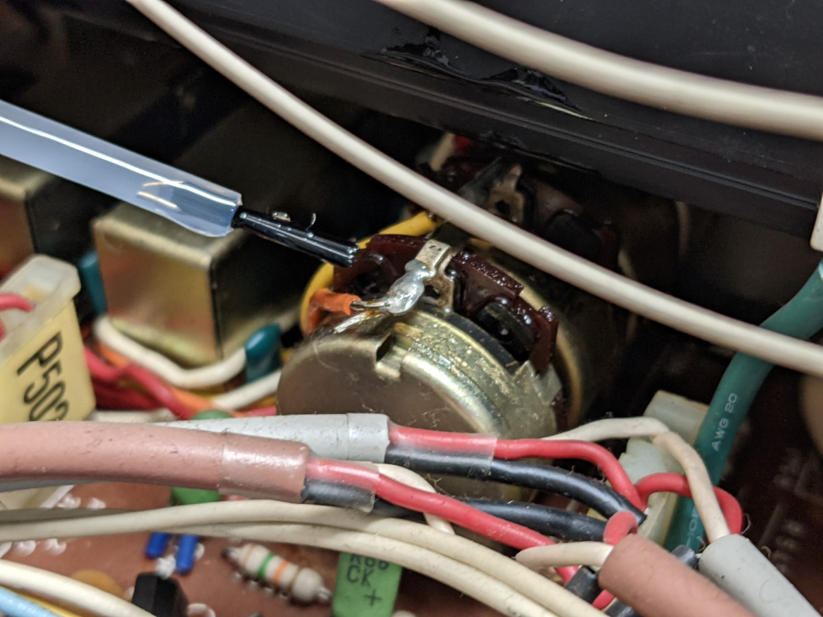 ボリューム、スイッチの摺動部分に接点復活剤を塗布し、馴染ませる。