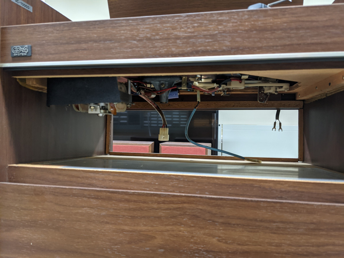 課題:アームリフターの部品の耐久性。CD-4のユニットはステレオで聞く分には要らない?でもはずして、Disconnectedにしても音が出ない。なぜ?
