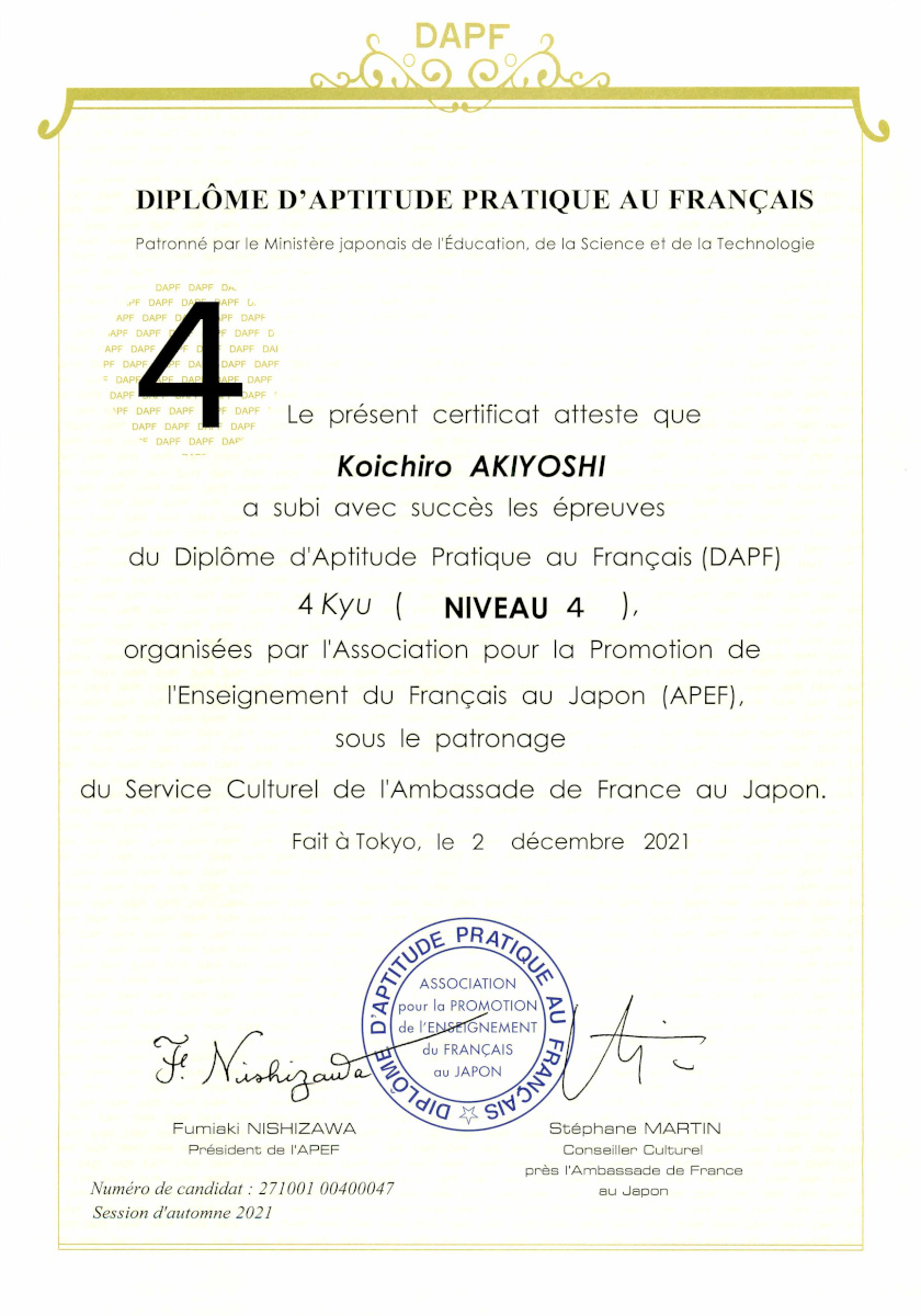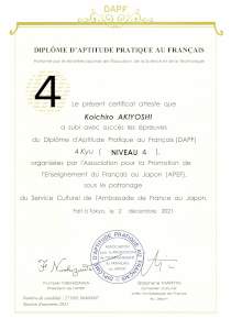 11月 フランス語検定4級合格