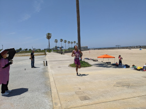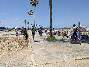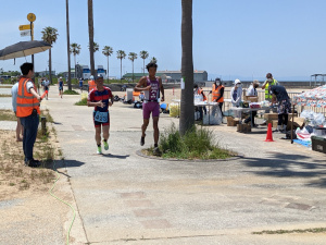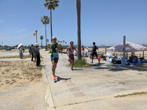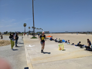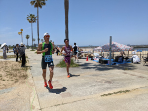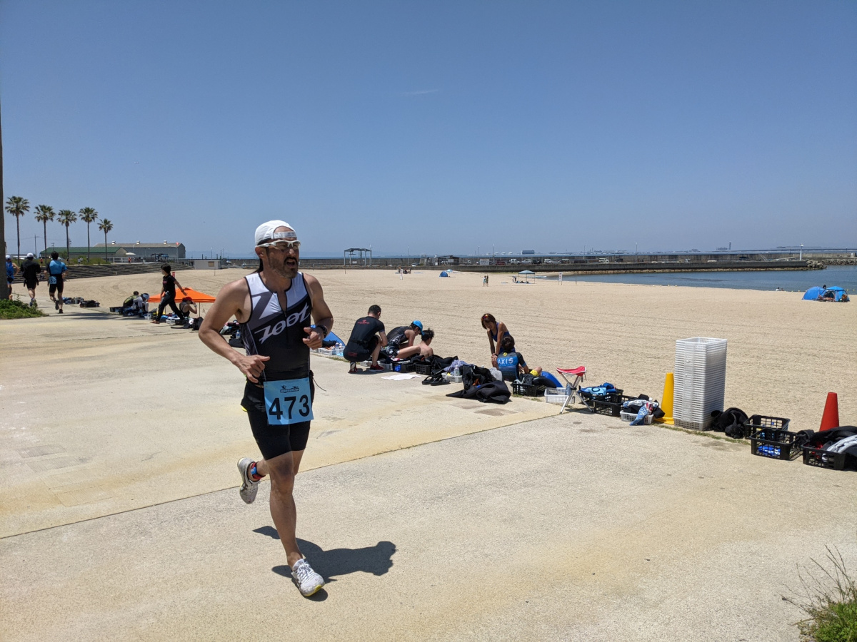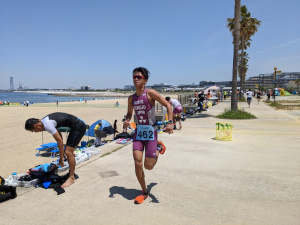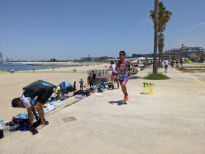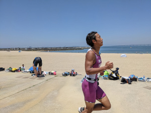 実はトランジットエリアで計測チップを足に再取付するのを忘れて走り出しました。痛恨のミス!300m走ったところで気がついた。引き返したためかなりロスタイムになってしまいました。 慣れないとなんか忘れますね。