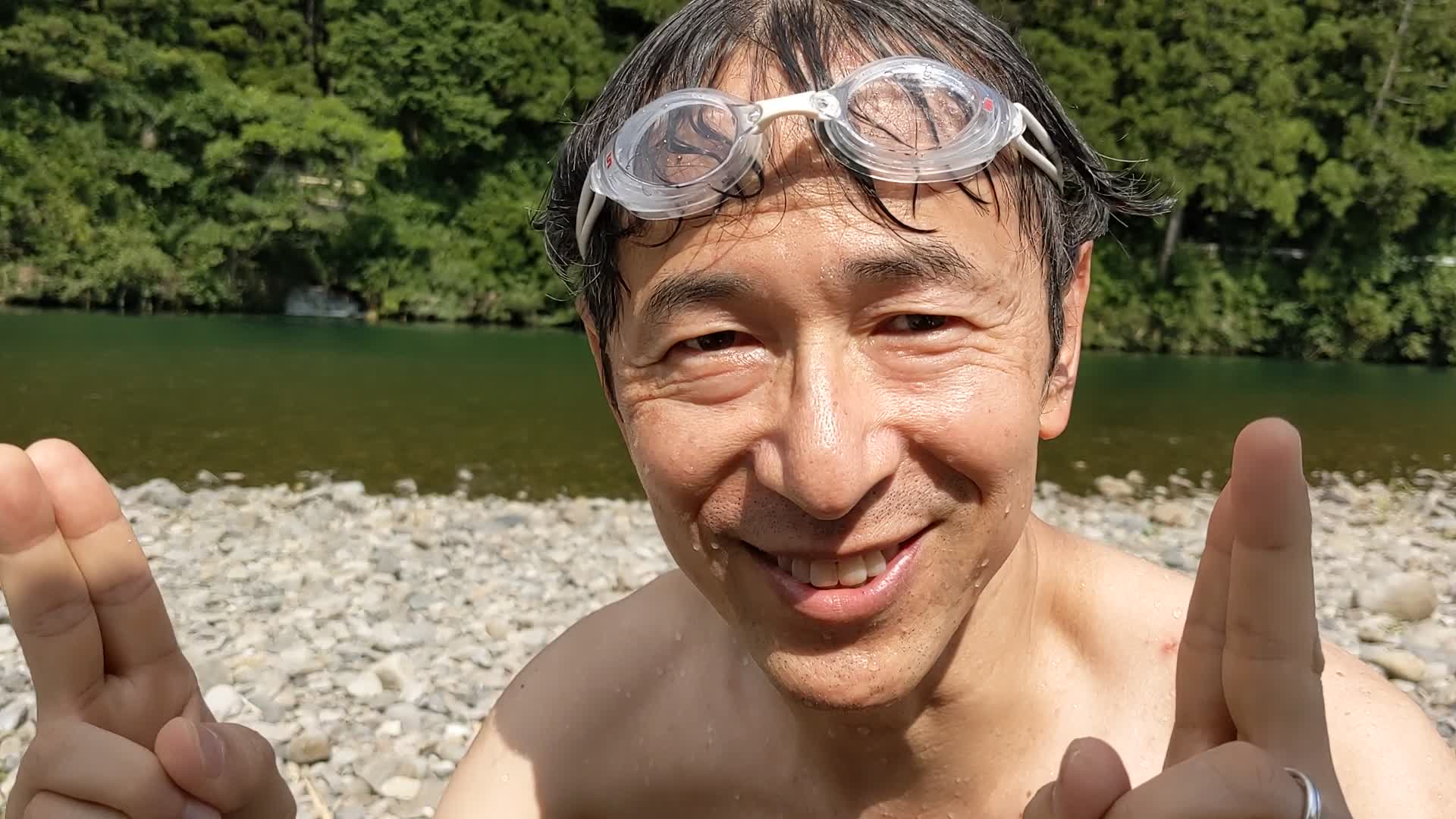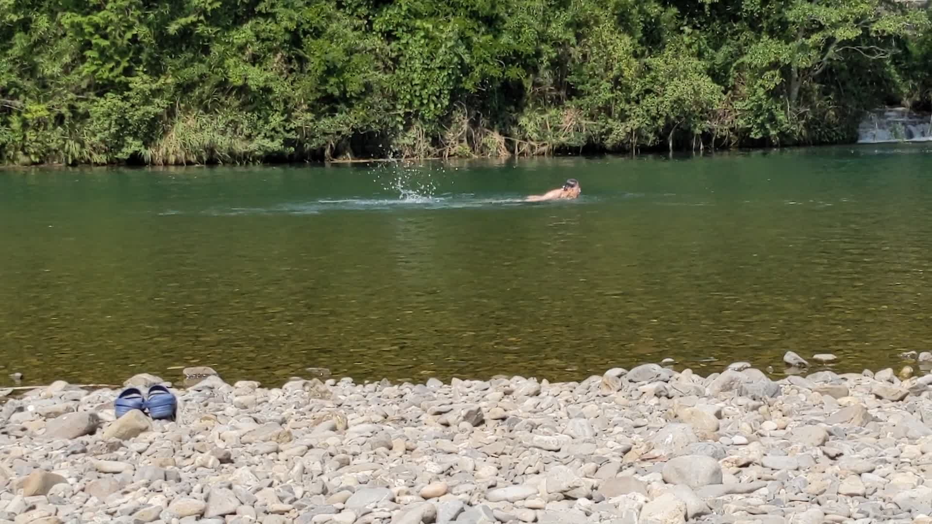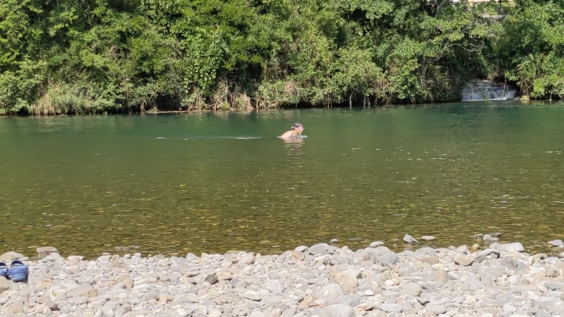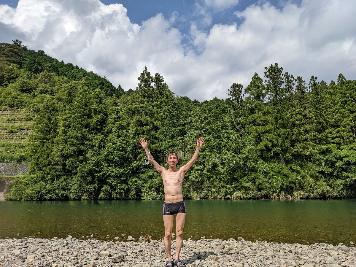 昨年は雨が多く増水していたので泳げませんでした。2年ぶりです。快晴。水温は25度くらいでしょうか。ちょうどいい感じでした。