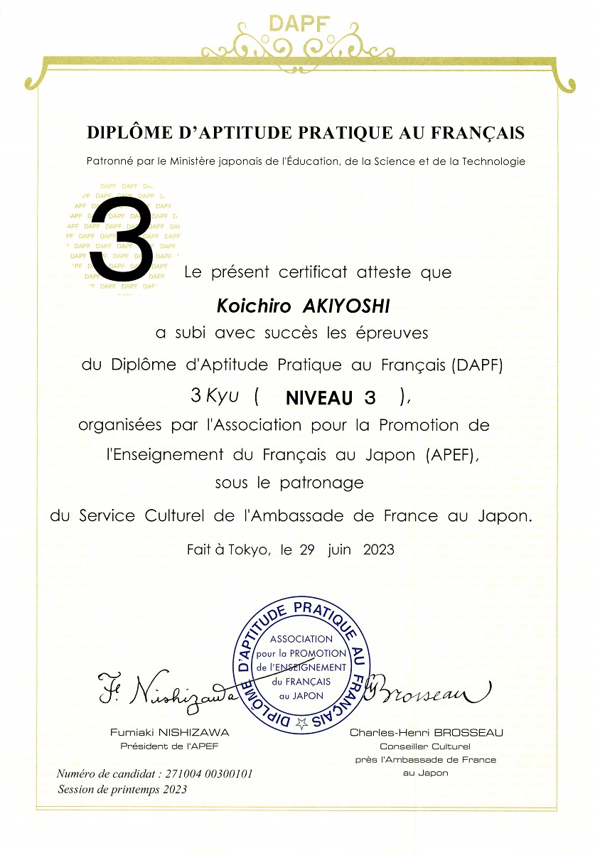 恒一郎は4つのアクアスロン(スイムとラン)大会に出場でき、学生や多くの方と出会いました。フランス語検定3級に合格しました。まだまだ勉強したいです。ジプシージャズの「MASH弦楽団」のライブに行けたのは嬉しかったです。久しく会えてなかった旧友に会えたのも良かったです。